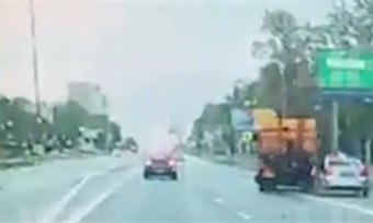 На кадрах, опубликованных на сайте life.ru видно, как автомобиль стражей правопорядка на большой скорости пытается обогнать грузовик, но тот поворачивает вправо, в результате чего происходит трагедия.